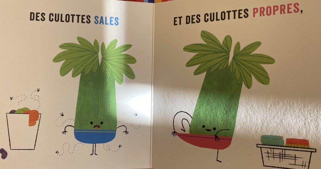 Un livre plein d’humour où les légumes défilent chacun avec leur culotte, ce qui amuse énormément les enfants. C’est une manière ludique et joyeuse de regarder les légumes autrement.